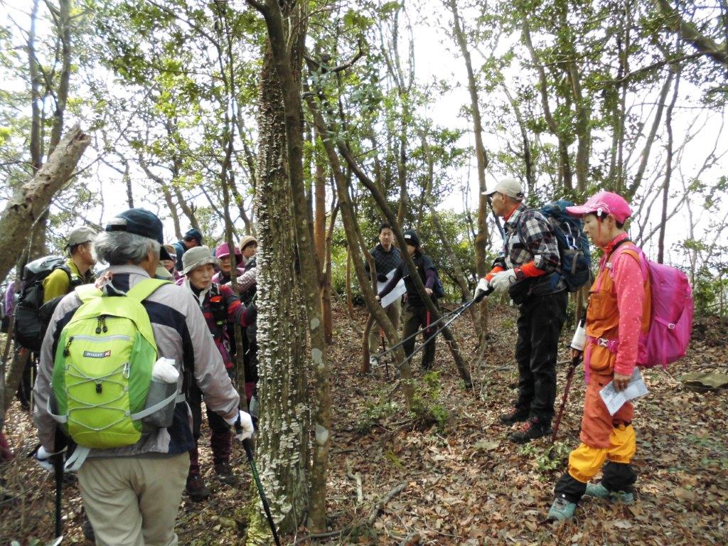 中世の山城、尼子×毛利戦跡について、会員の今岡講師の解説で真山〜白鹿山まで縦走した