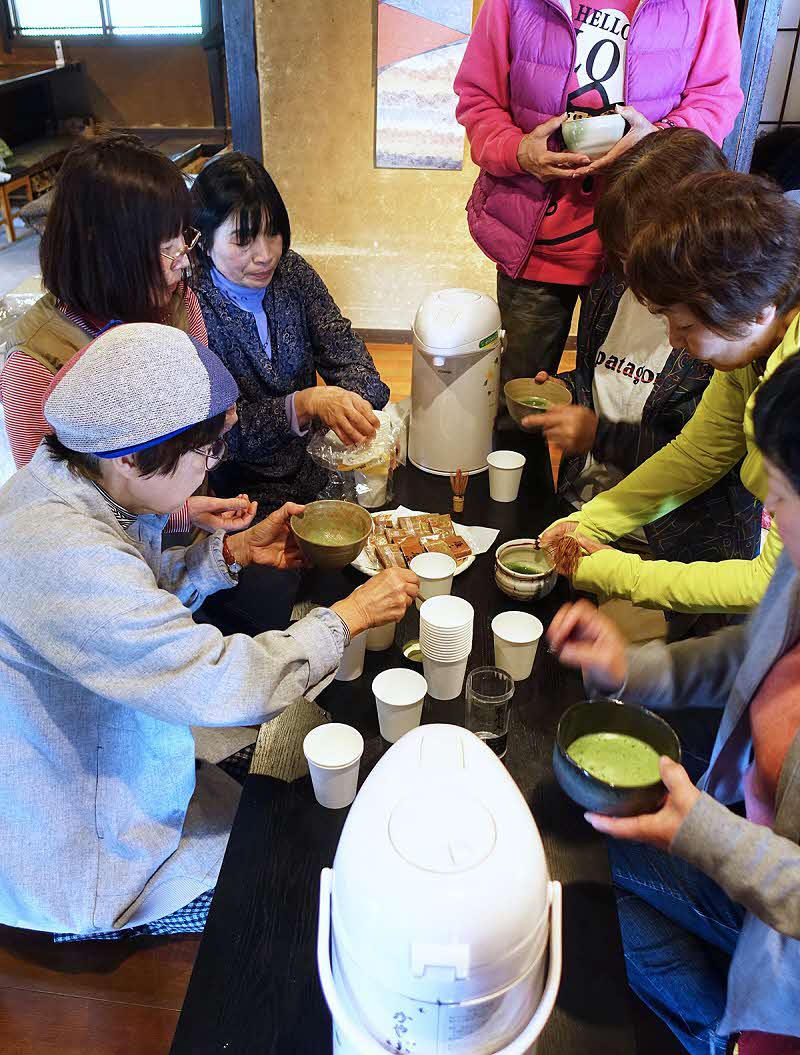 豚汁が提供され担当役員さんの愛情のこもったアツアツの豚汁を美味しく頂くとともに、抹茶とお菓子の