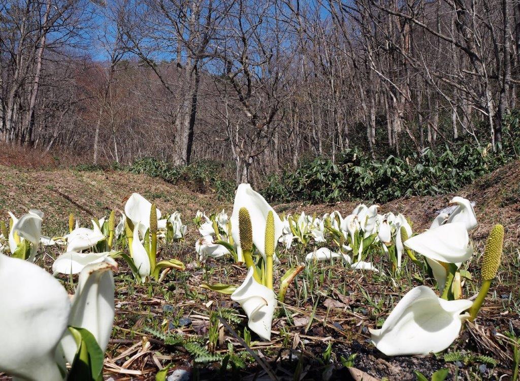 下山後、立ち寄った「うたたねの里」のミズバショウ