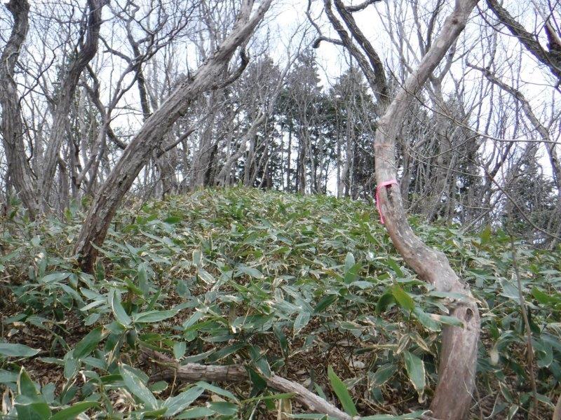 しばらくは道跡もハッキリし順調だったが次第にこの状況に。所々の赤テープとGPSを見ながら慎重に進む。(11:30)