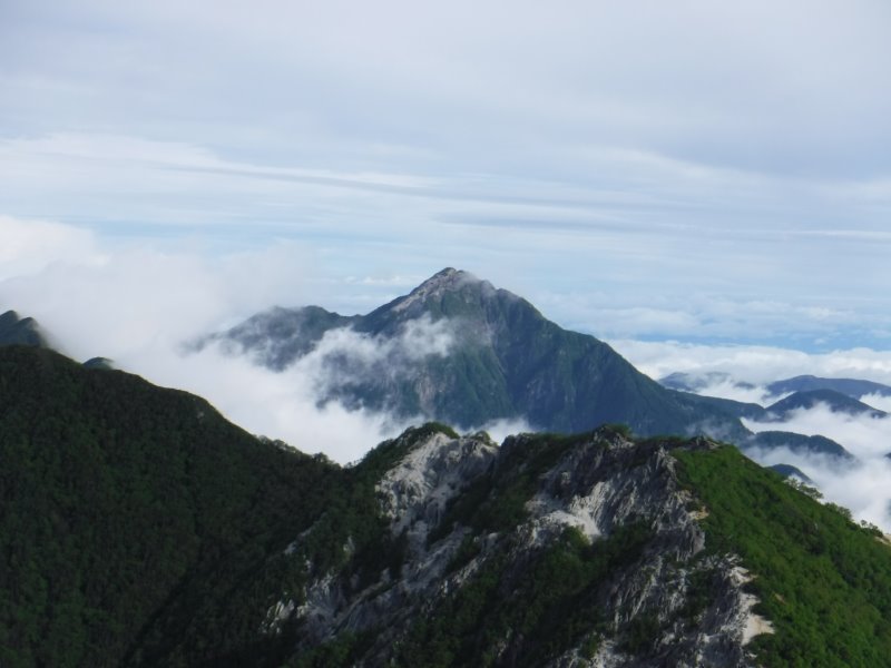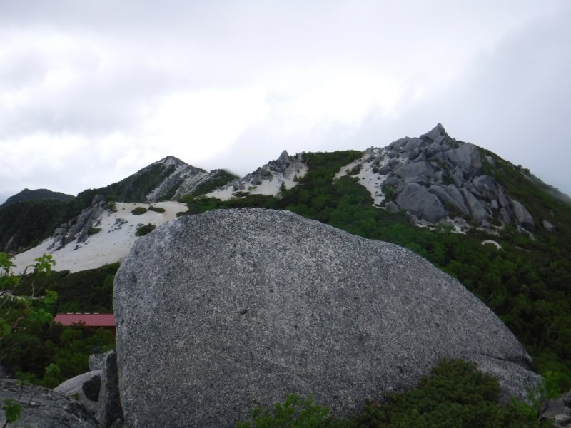 観音岳からの甲斐駒ヶ岳。花崗岩で白く光る。山の団十郎と呼ぶそうな。