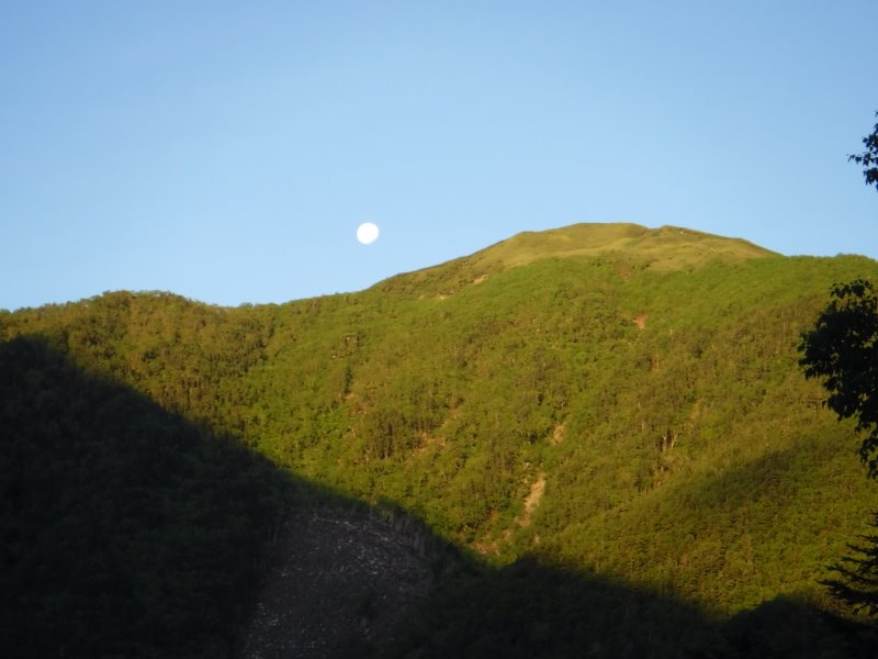 三日目の朝。満月が疲れた背中を押してくれる。(今日も行くか!!)