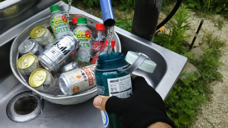 薬師岳小屋では水が貰えないため、ここで十分に補給をする。