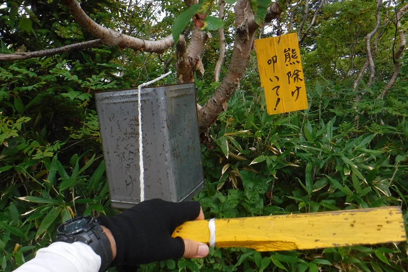 3 種池山荘テン場に設置 目一杯叩いて歩を進める