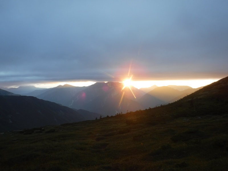 8 越中沢岳を前にご来光が