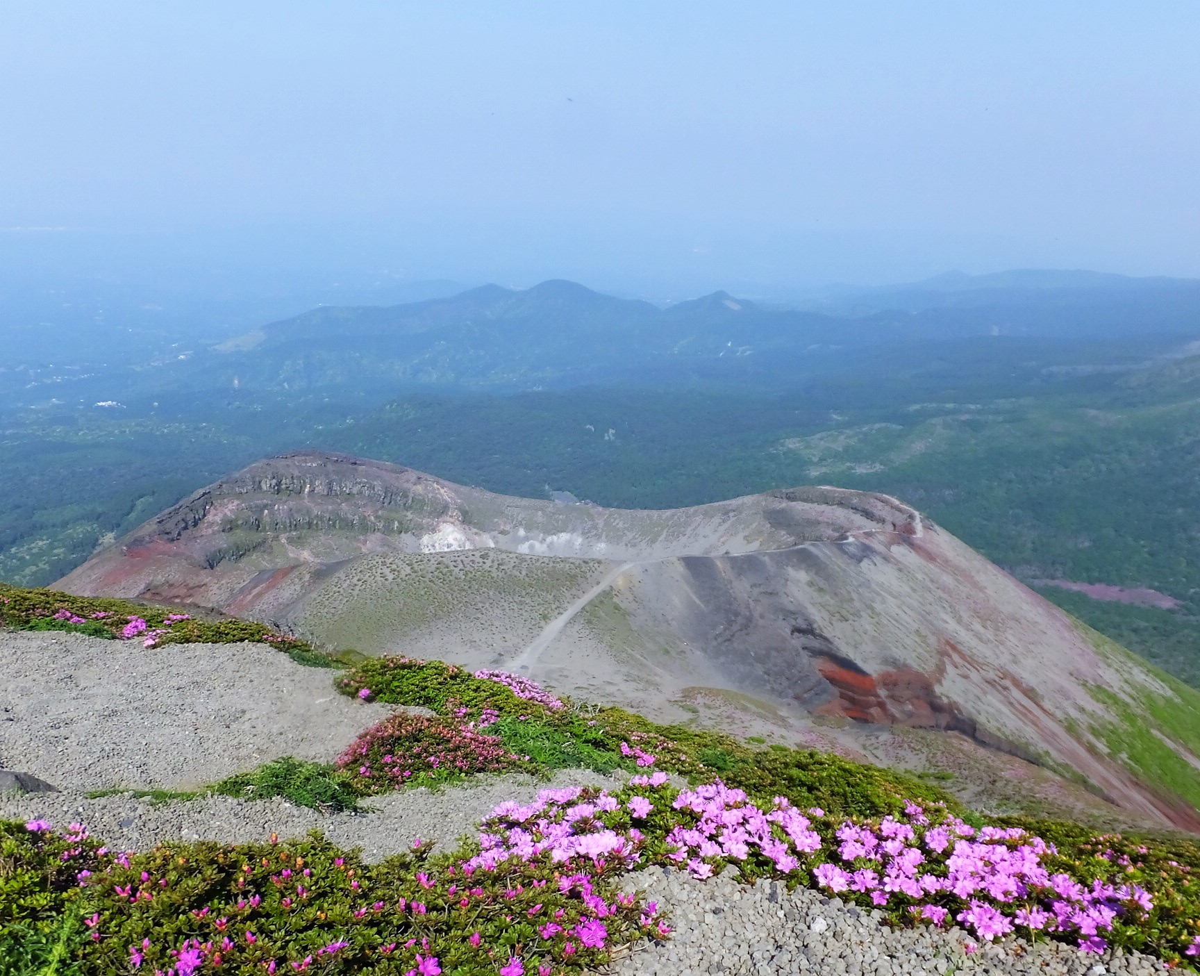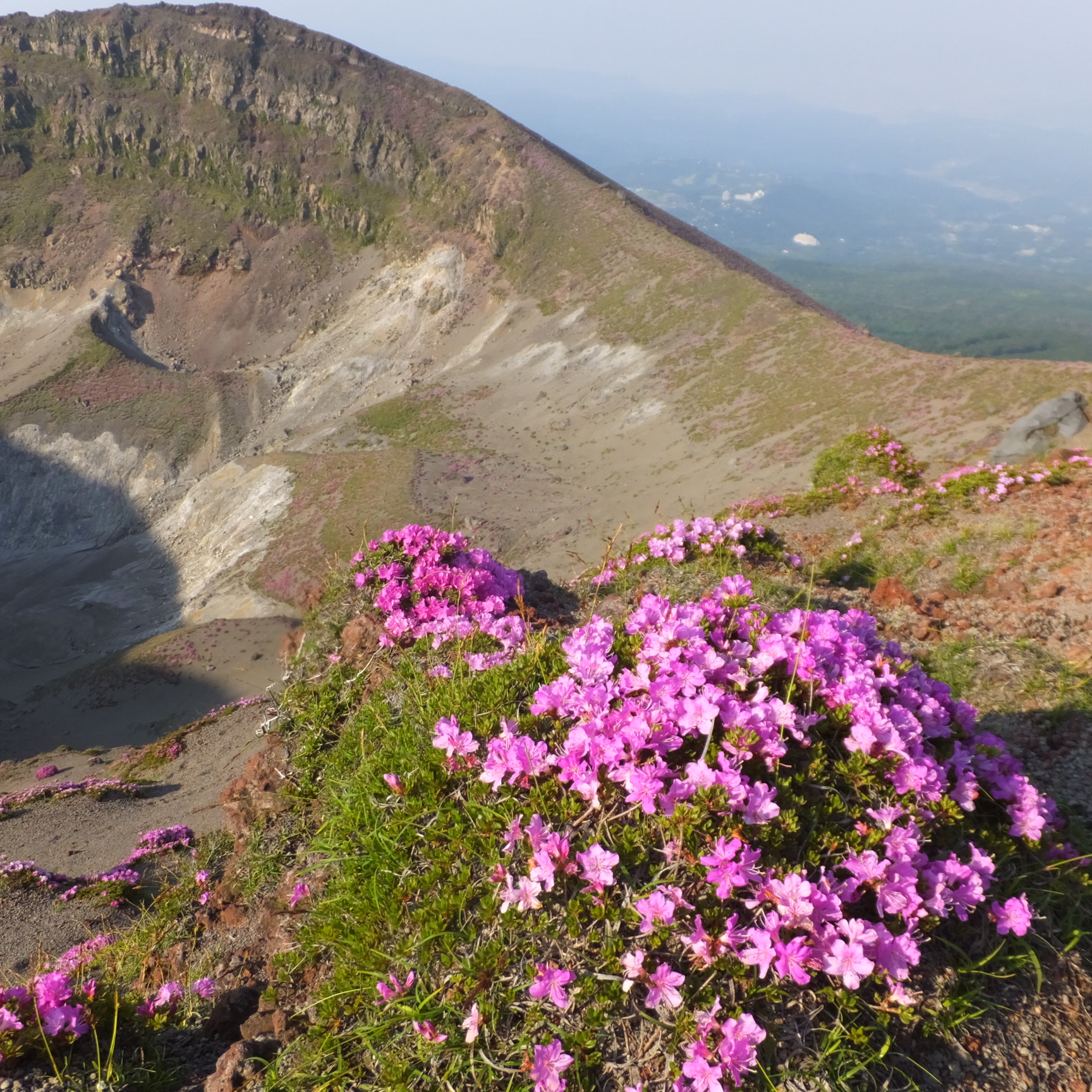 お鉢周りの稜線からはミヤマキリシマの群生が綺麗