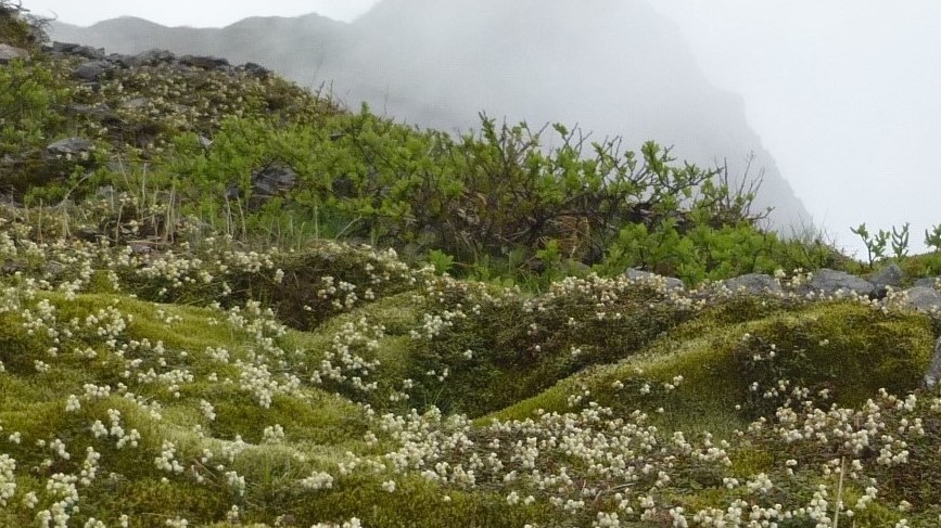 苔のジュウタンに、コメバツガザクラが 群落を作っていた☆