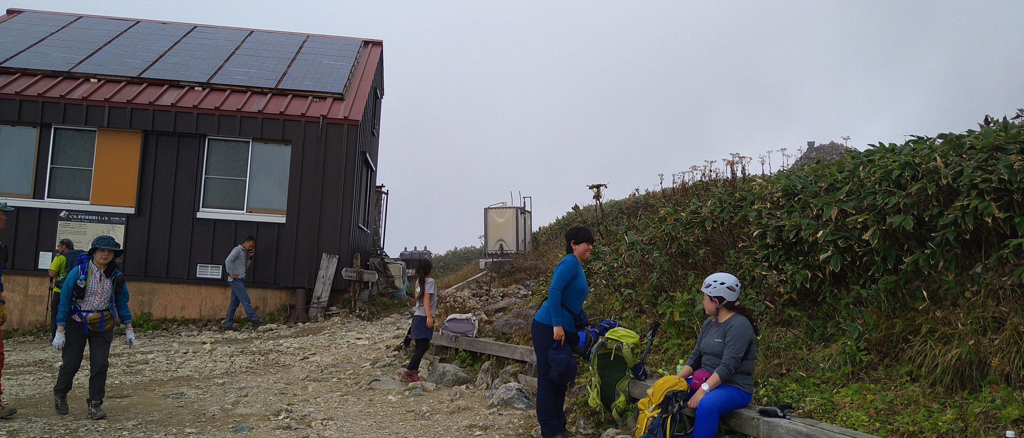 谷川岳肩の小屋・稜線の上にある。今回登った3座のうち登山者がまあまあ多かった。