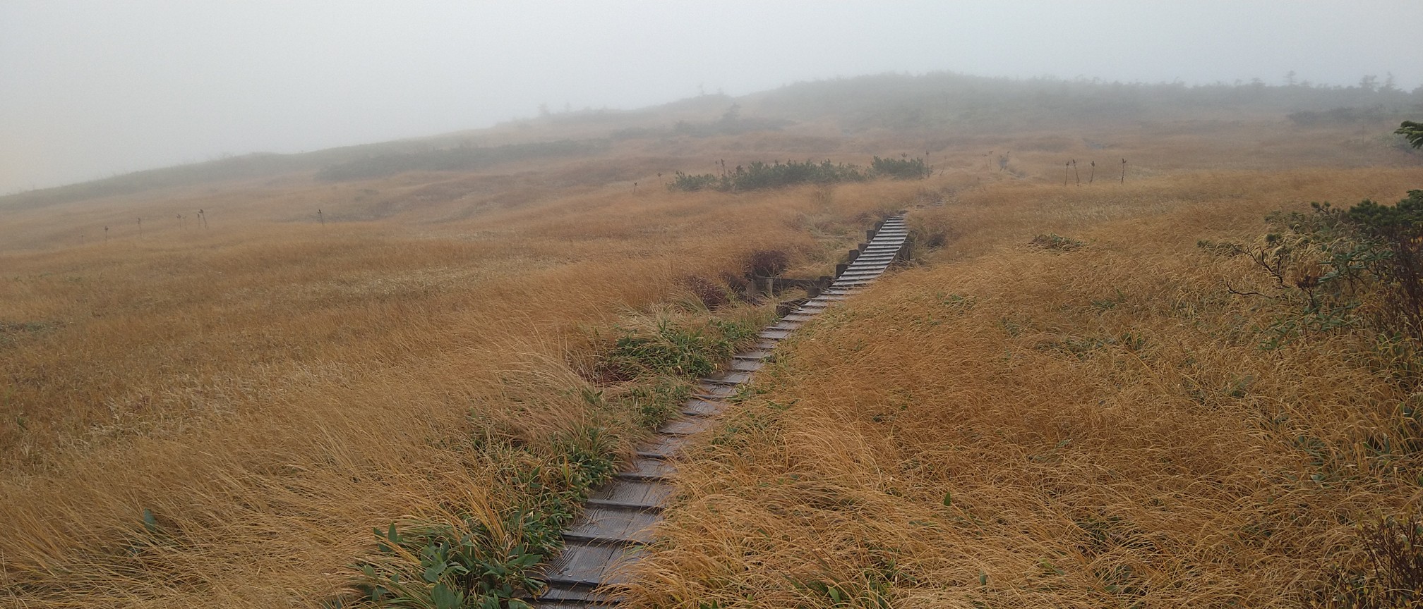 小雨が降ったりやんだり。白いガスに覆われないで景色がみられたのが良かった。