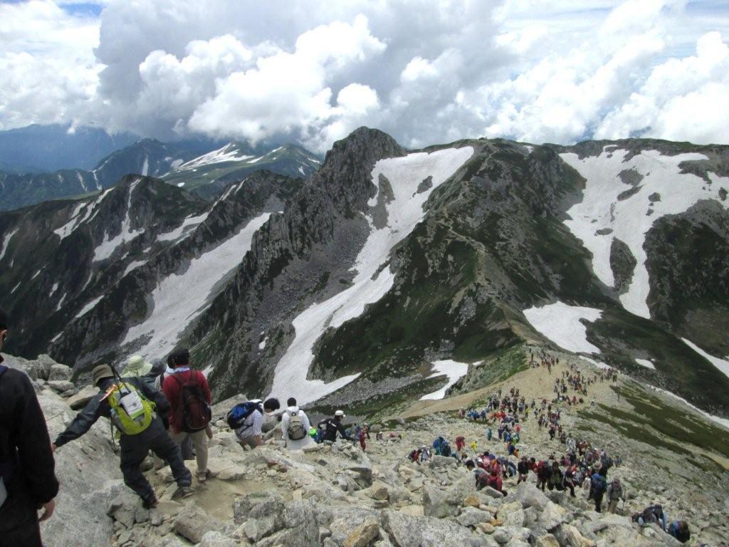 一日目 雄山から一ノ越の眺め。子供達の団体多数で上りも下りも渋滞気味
