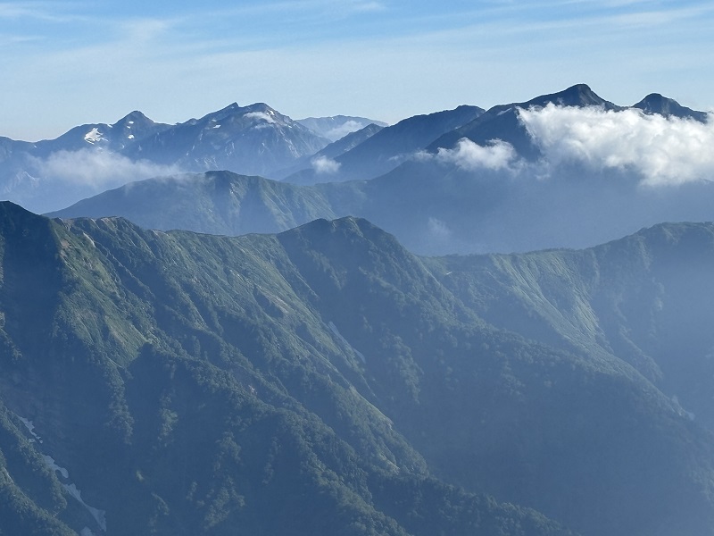 二日目は蓮華岳へピストン!展望が開け北は白馬岳、南は槍ヶ岳・穂高連峰、西には剱岳に立山、そして薬師岳!