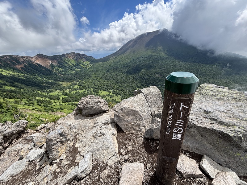 浅間山の全貌と途中の槍ヶ鞘からトーミの頭が見たくて黒斑山へ。残念ながら浅間山山頂にはガスがかかり全貌は見えませんでしたが、ニホンカモシカに遭遇するなど楽しい山行でした。