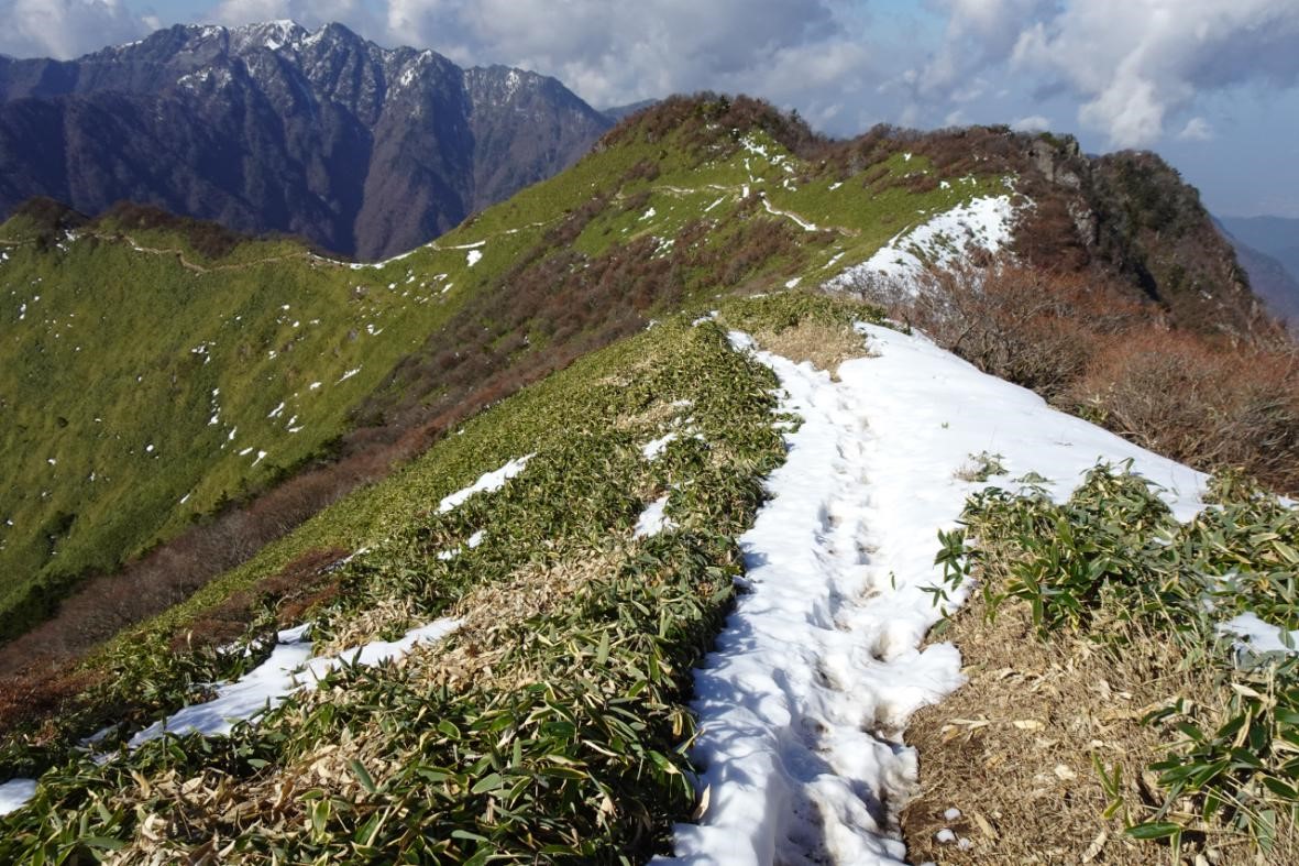 伊予富士から東黒森への稜線、向こうは瓶ヶ森