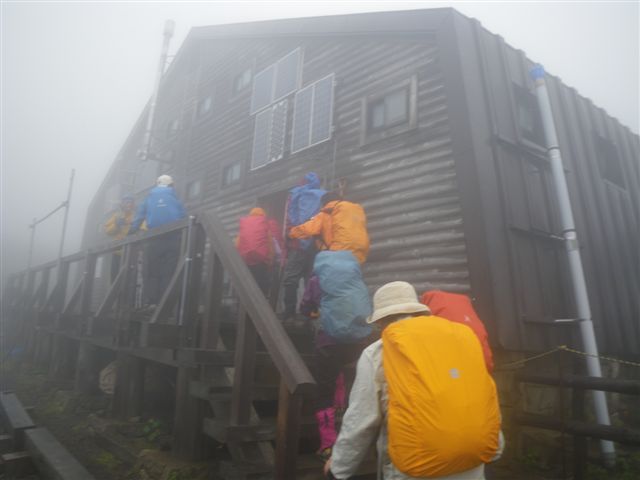 やっとたどり着いた8合目避難小屋、豊富な水、綺麗な室内、バイオトイレ、言う事なし