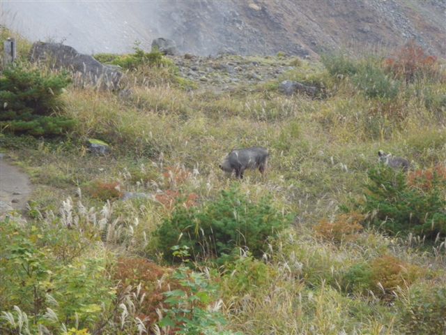 登山道上にカモシカの親子登場 しばらくこちらを伺っていた