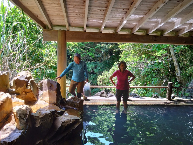12 裏見ケ滝温泉(混浴・水着着用・無料)偵察のあと水着着用で温泉に浸る。いい湯だった・・・