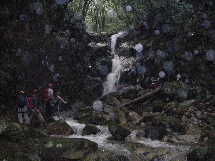 8月27日13:00寂地峡ケビン集合、小雨、寂地峡沢登り、MHC4名参加