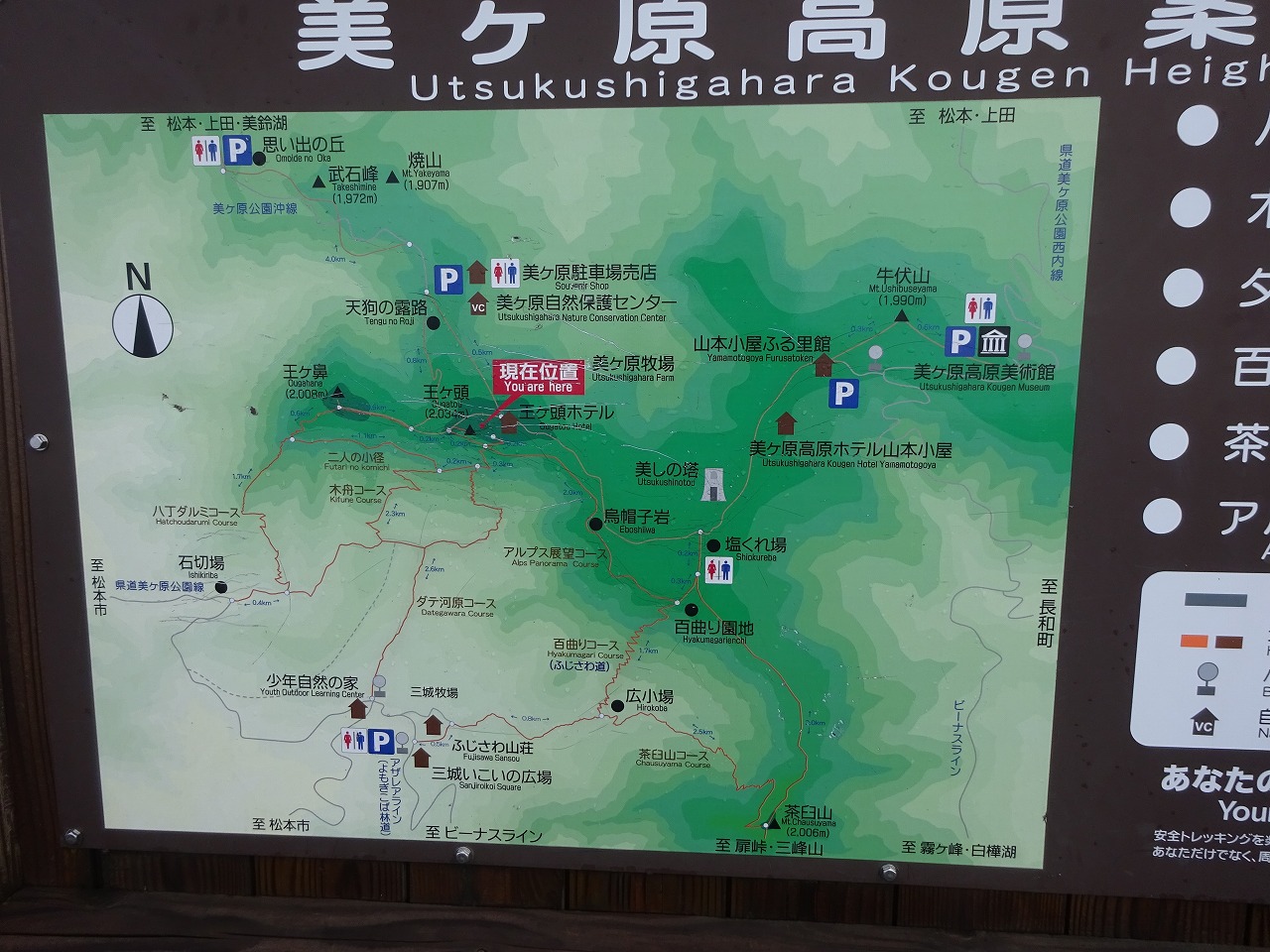 17 センターに着きトイレ休憩。それから1000段の石積みの階段を登って美ケ原の台上の王ケ頭に着いた。フー!