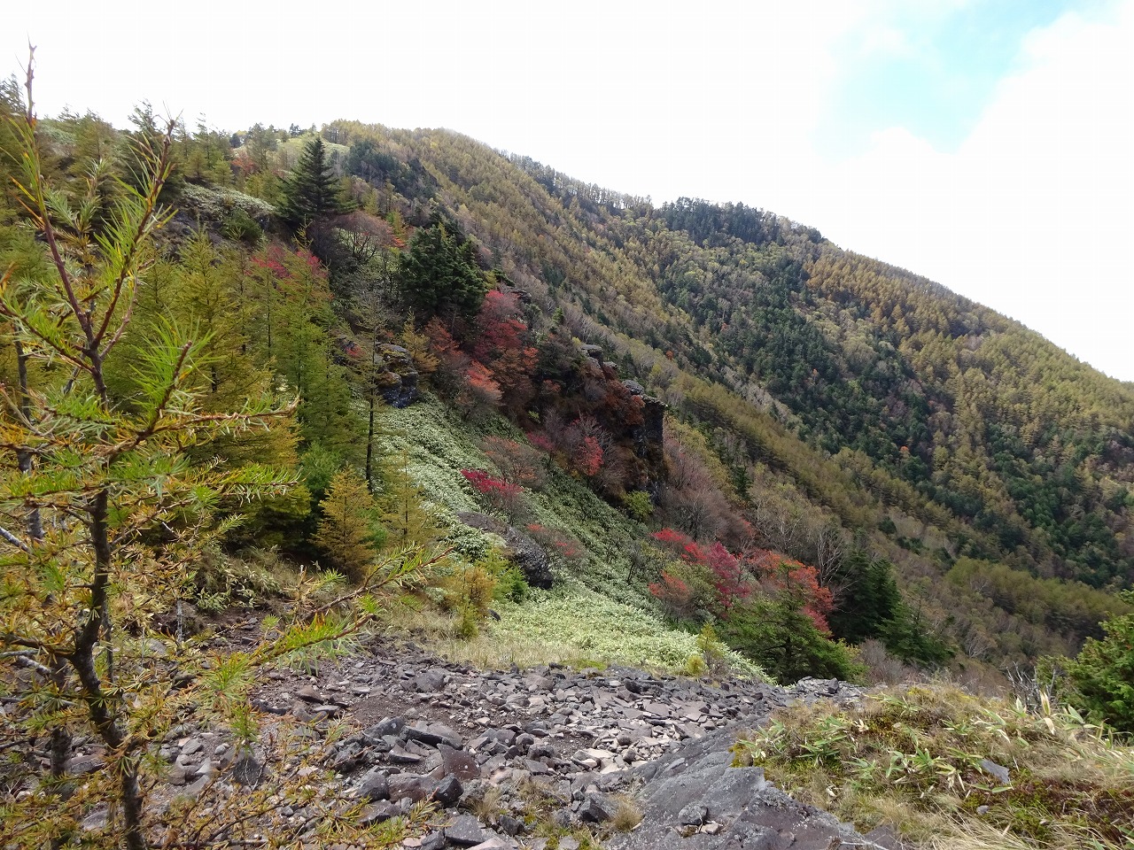 6 頂上3時間半でついた。稜線は岩がゴツゴツと。大山を想定していたので楽勝だった。