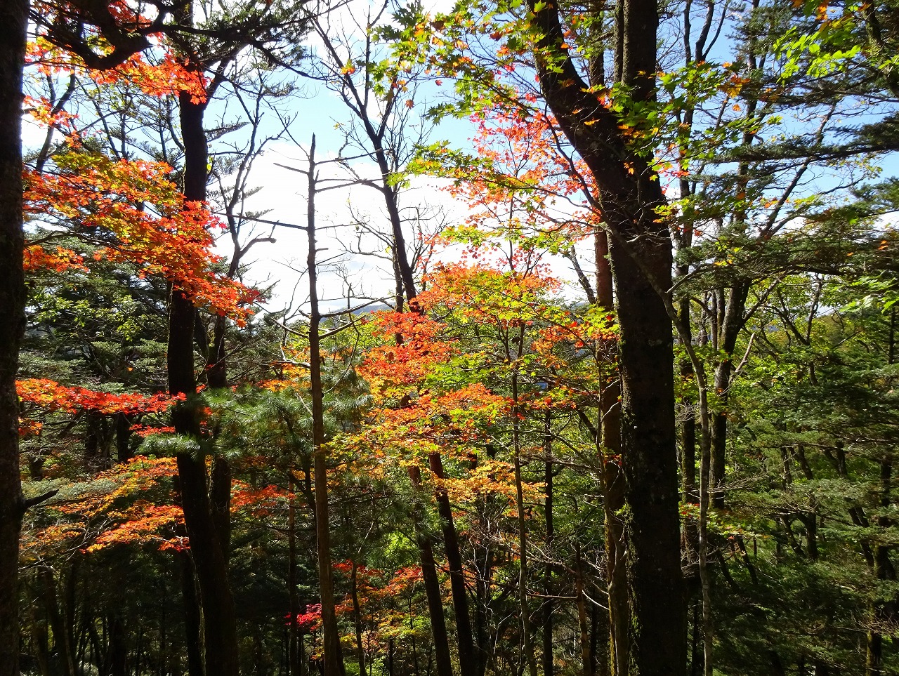 4 目指すはあの戸谷峰1629m。周りは赤松やクヌギなどの木々