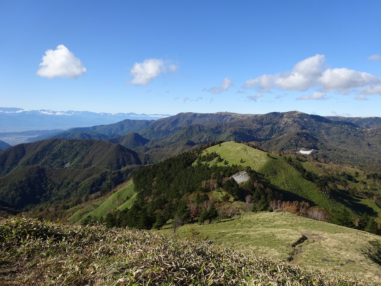 31下ってビーナスラインに合流、小さく映っている真ん中のアンテナのある山は車山
