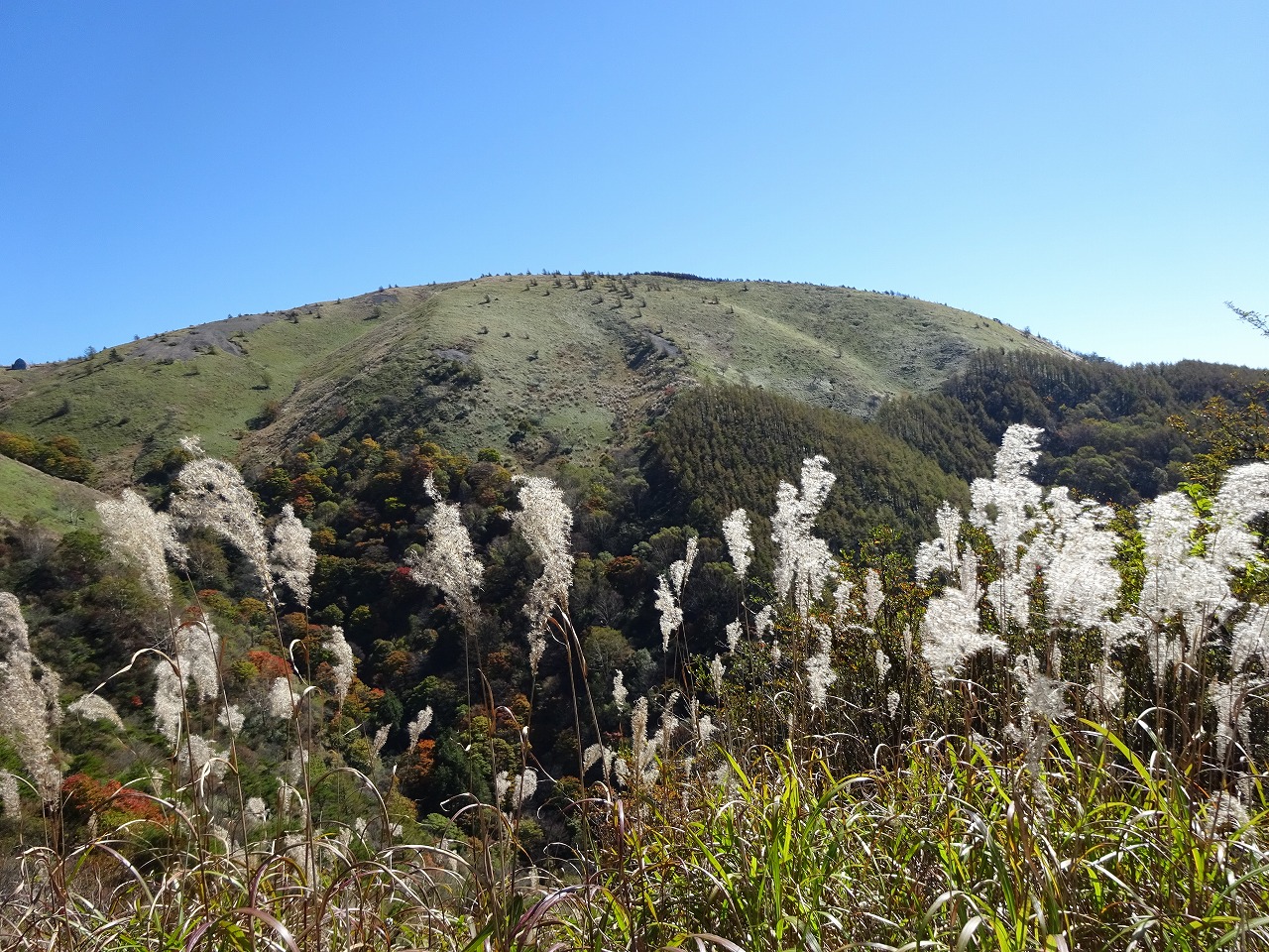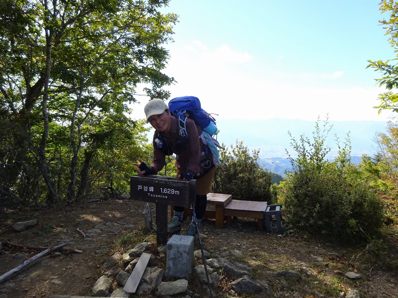 34写真中ほどの三角の山からおりて次の手前の山へ登りぐる〜と半時計周りでここまできた!