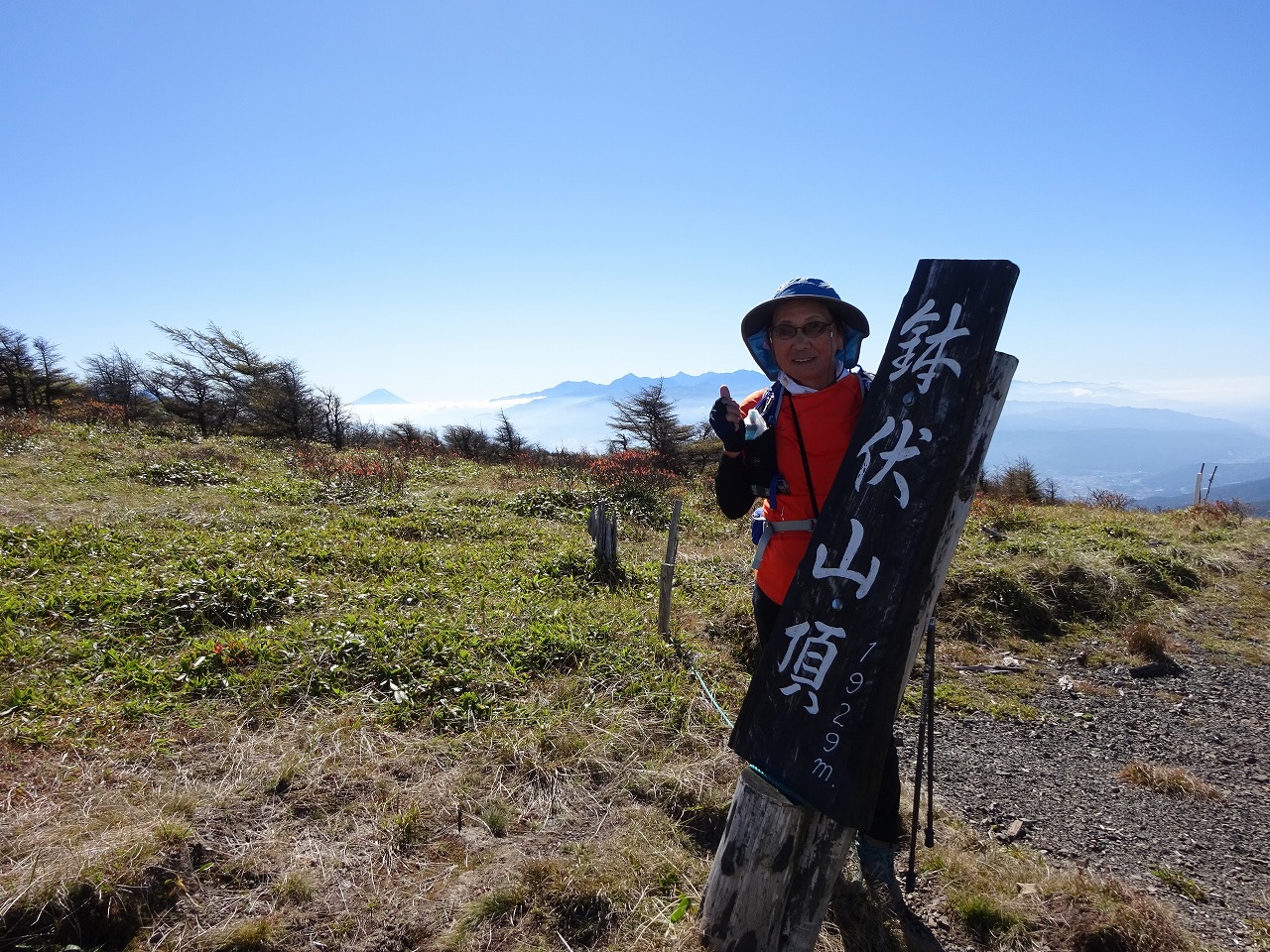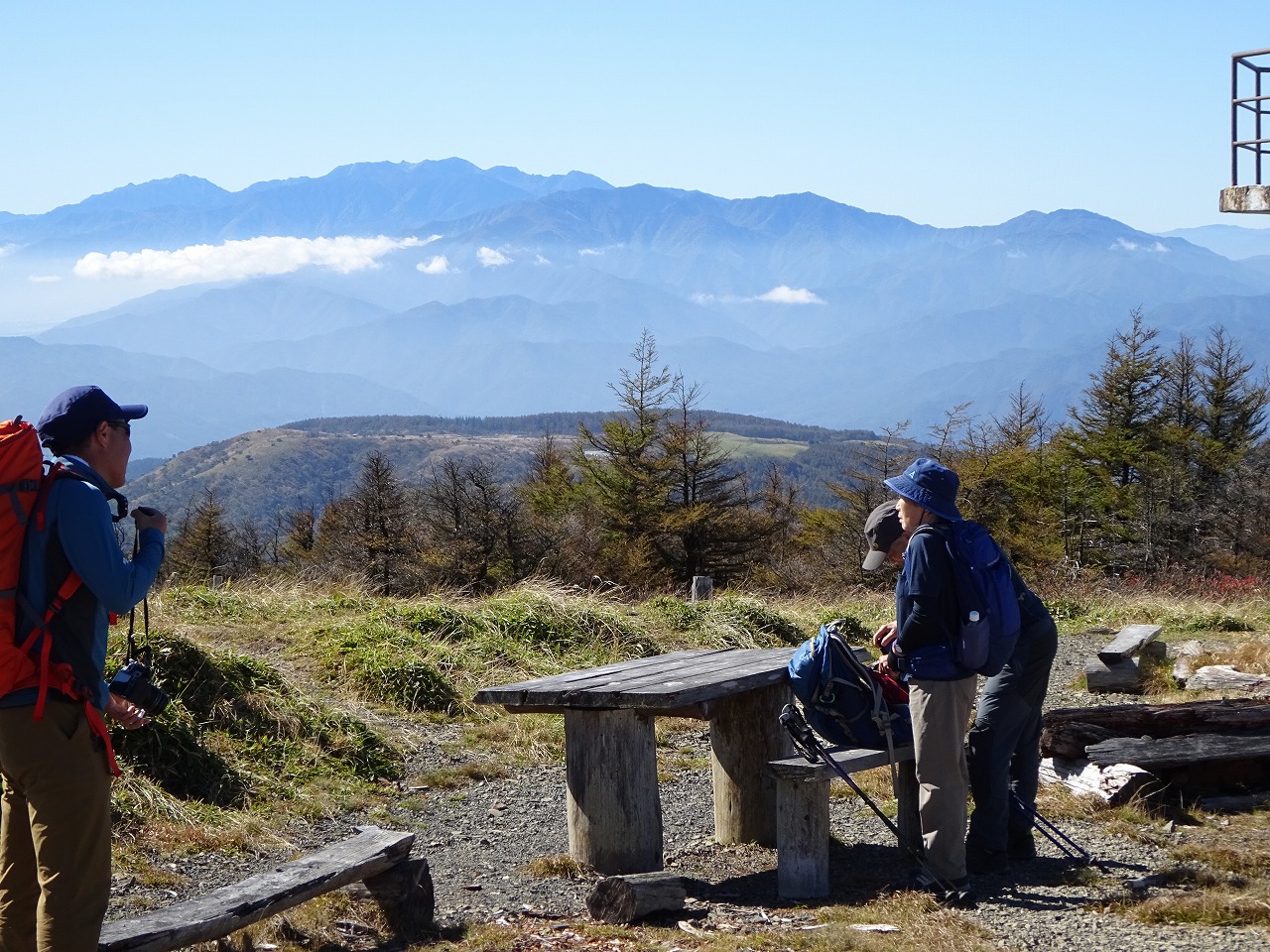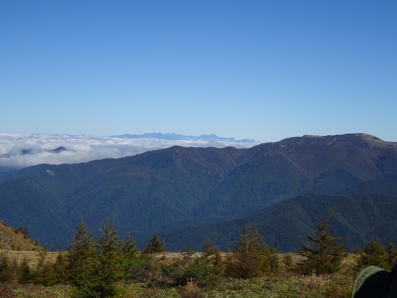 36御嶽山方面。この日は澄んでいて富士山浅間山雨飾山高妻山立山劔野口五郎岳千丈岳北岳八ケ岳南八ケ岳など遠いけどよく見えた。